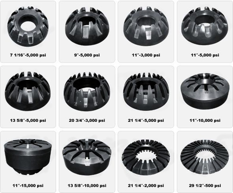 The packing element for Annular BOP is a special high performance product for preventing the blowout. The packing element is combined by the main body which is made up of the independent innovation rubber based polymer alloy material and the high strength metal frame, which conforms to the USA 16A, SATM D412, D624, D2240 and D471 standard. It is suitable for the drilling work on the oil field, which shares a high cost performance comparing to the other same type packing elements. And the repair seal kits are equipped.